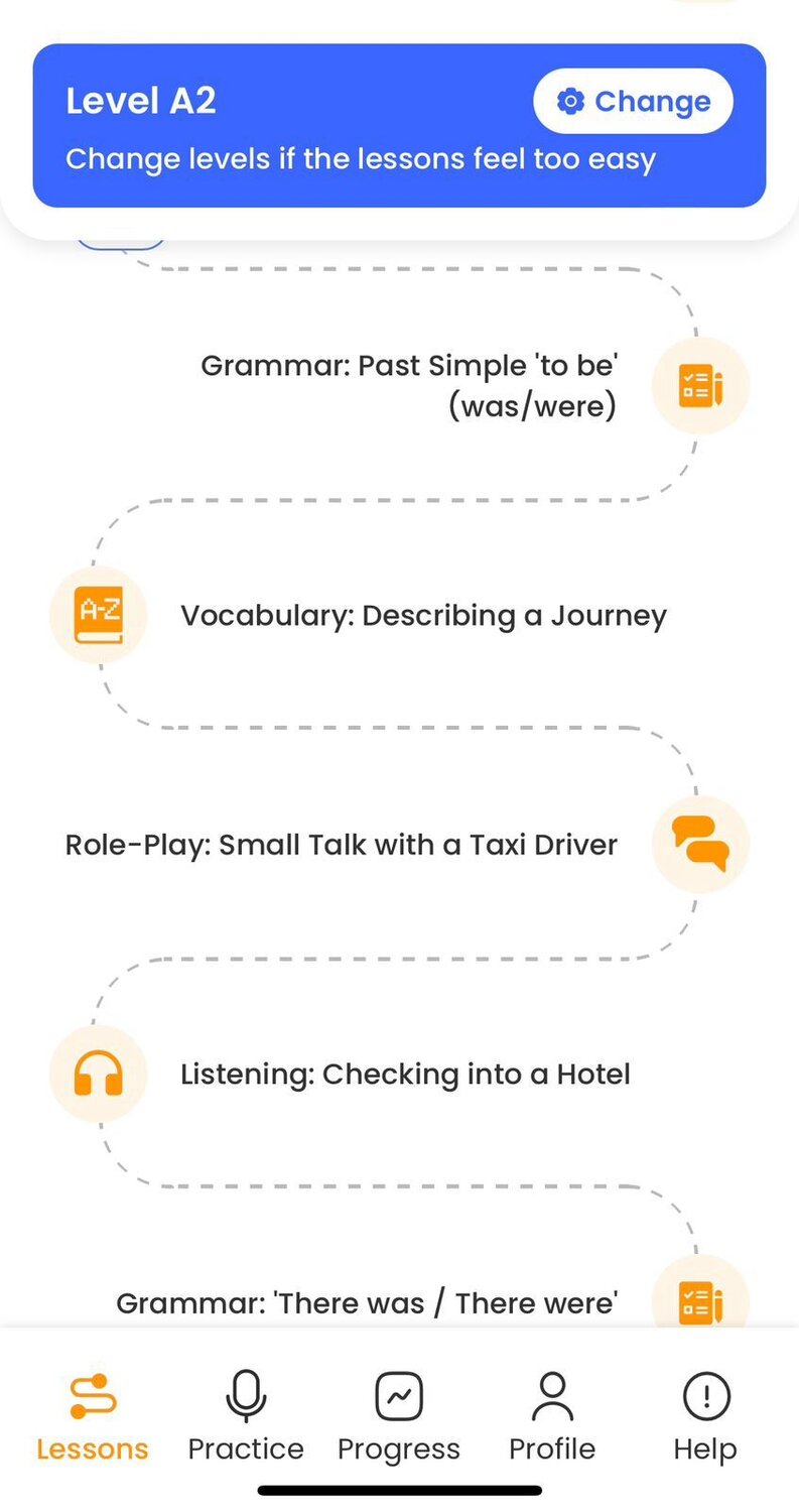 Lessons tailored to your English level and goals, with practice across speaking, listening, grammar, and vocabulary.